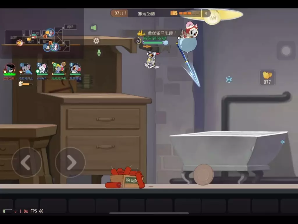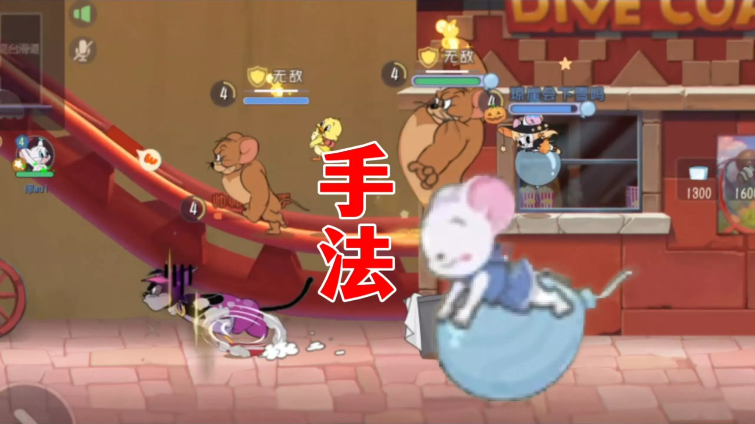 这是《猫和老鼠》的游戏内容,展示了玩家使用米雪儿的第二武器在对局中反复黏住猫进行牵制的玩法,该武器能给猫带来不小的干扰,使用体验畅快。