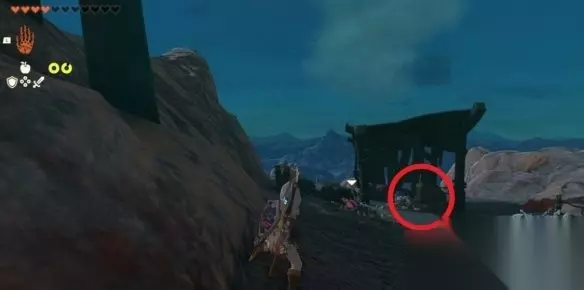 格鲁德盾在下图位置,注意有一个高台,上去可以拾取。