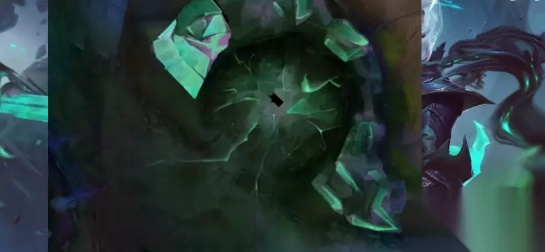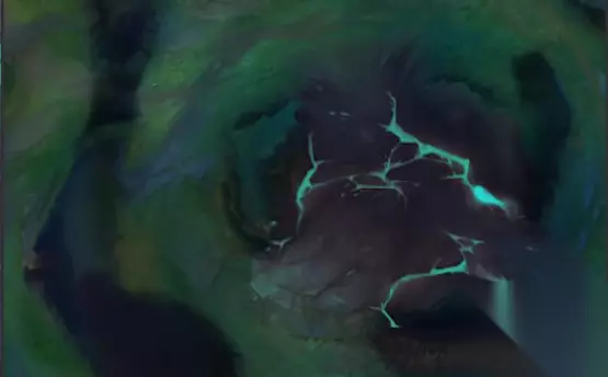 全地图的破败化使得整个地图都是绿油油的感觉,暗沉的颜色,搭配地图时不时出现裂缝的位置,俨然就是暗影岛的风格,确实很帅。小龙坑处的破败化可见一斑,依然拥有龙的标志,但整体给人的感觉就是阴森,死寂,不过这也是真实反应了暗影岛地貌的样子,不得不说这一次策划师们真的很用心。