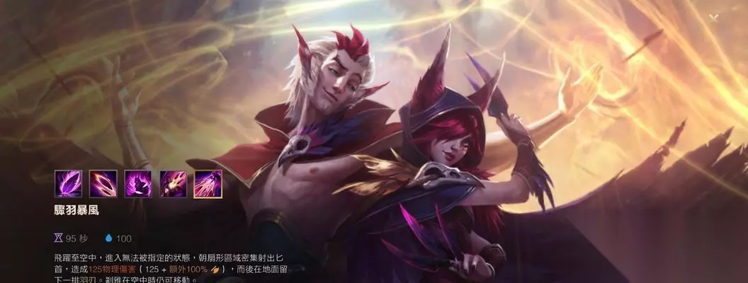 在《英雄联盟》这款全球性的竞技游戏中,霞以其飘逸的技能和高额的伤害输出成为众多玩家喜爱的英雄之一。要掌握这位拥有华丽操作空间的英雄,了解和精通其技能是基础。霞的技能有哪些?如何运用这些技能进行实战?本文将为您详细解答。 一、普通攻击与被动技能:穿刺之羽 霞的普通攻击附带穿透效果,可以对一条直线上的敌人造成伤害。当技能激活时,霞的普通攻击会向目标发射带有羽毛的飞镖。每击中一个敌方英雄或大型野怪,霞会收回一个羽毛,从而获得额外的移动速度。这个被动技能使得霞在追击和风筝对手时有着天然的优势。 二、Q技能:锐羽冲击 Q技能使得霞在短时间内提高自身移动速度,并对前方敌人造成物理伤害。激活Q技能时,霞的下三次普通攻击会发射额外的羽毛。这个技能是霞进行远程消耗与快速接近对手的重要手段。 三、W技能:羽刃风暴 W技能的开启可以让霞在短时间内获得攻击速度加成,同时普通攻击会发射一道羽刃,对敌人造成额外魔法伤害。这是霞的主要输出手段之一,尤其是在团战中,W技能的使用可以大幅度提升霞的战斗力。 四、E技能:倒刺陷阱 霞可以放置一个陷阱,当敌方英雄经过时会受到伤害并被禁锢。这个技能在追击或防Gank时尤为有效,但需要注意的是,陷阱的放置位置和时机是使用E技能的关键。 五、R技能:终极时刻 R技能是霞的招牌技能,开启后霞会变得不可被选取,并在短时间内快速移动,同时普通攻击可以发射三道羽毛,对敌人造成物理伤害。这个大招不仅让霞在团战中能够躲避关键技能,还大大增强了她的爆发力。