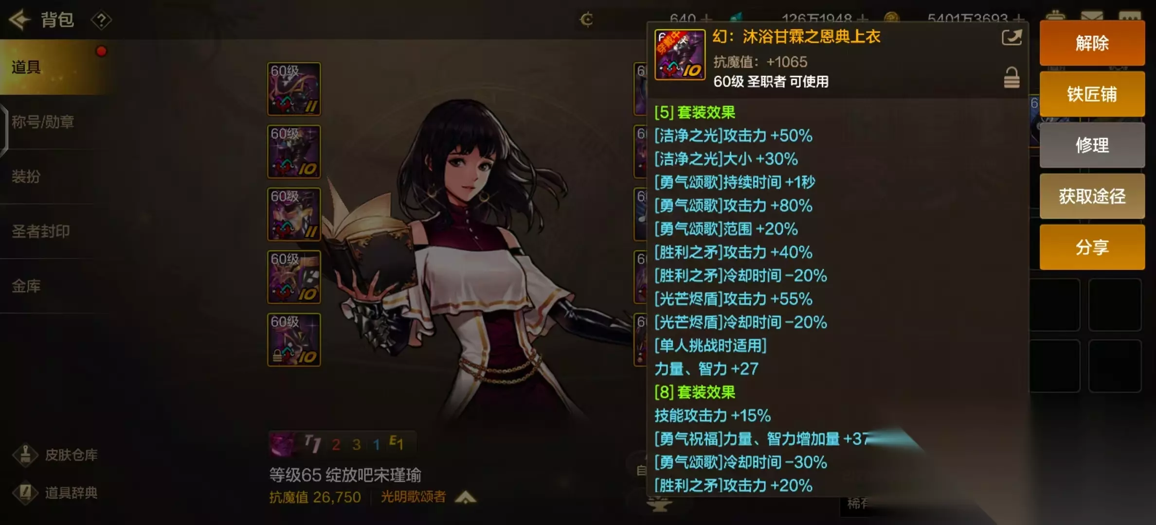 8套装的buff增益:85+370=455力量/智力 武器buff增益:100力量/智力 14级的技能buff:730力量/智力 730+100+455=1285力量/智力,如果辅助装备用上米歇尔的圣杯,直接破1300的力量/智力加成!