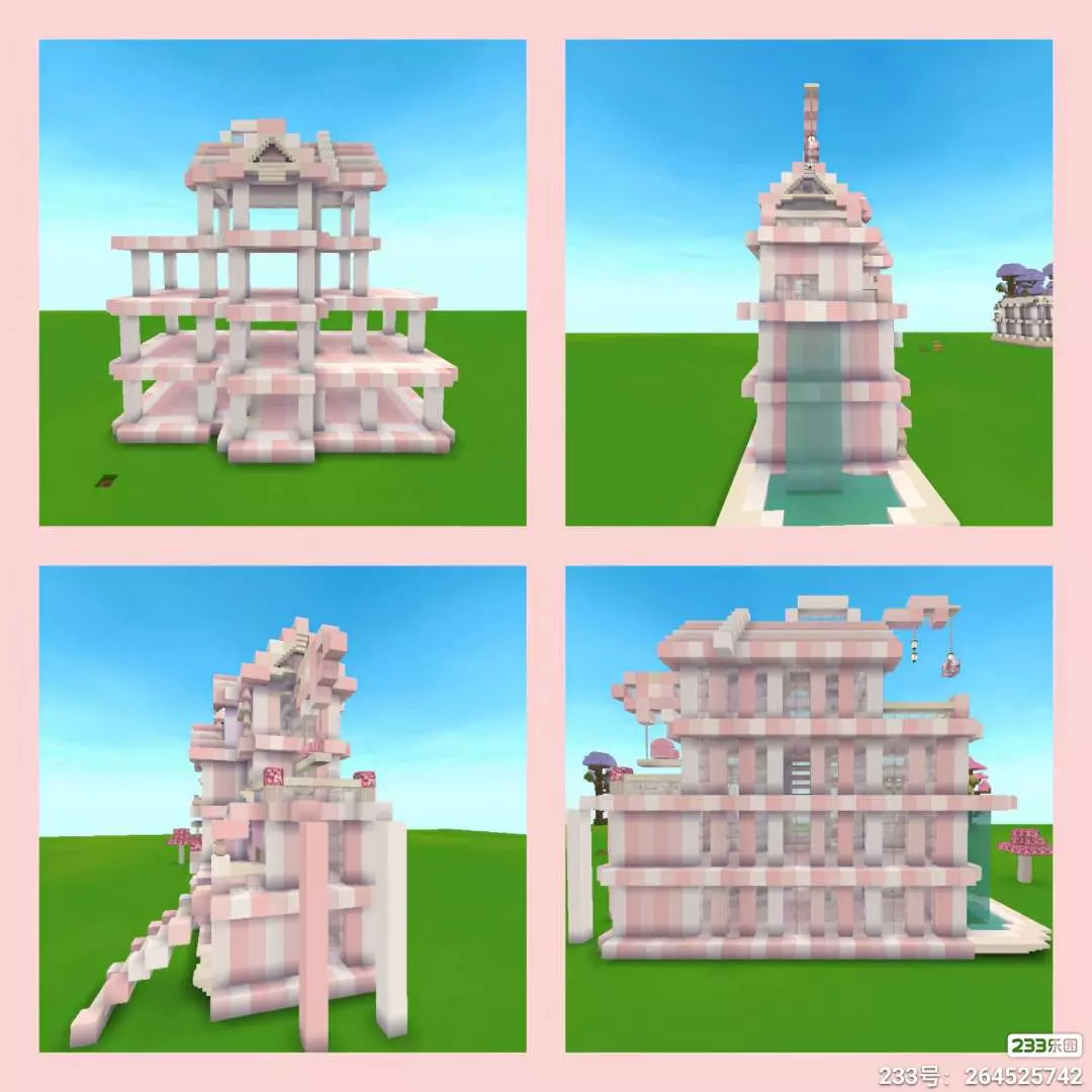 【迷你建筑】粉色三层别墅