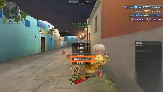 1.首先,玩家进入穿越火线游戏中后。按下esc键调出设置,然后选择游戏结束。
