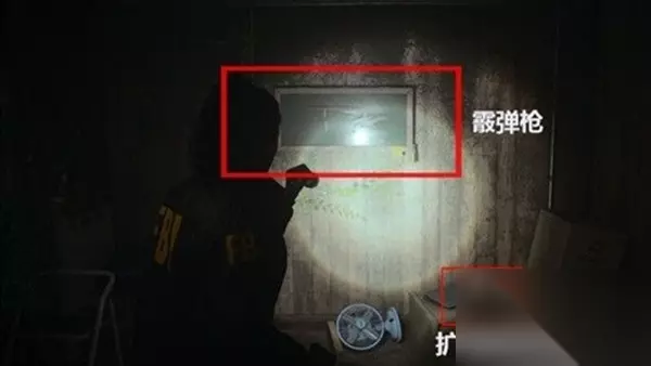 18、收集角落桌子上的【扩展背包】以及墙上的【霰弹枪】。