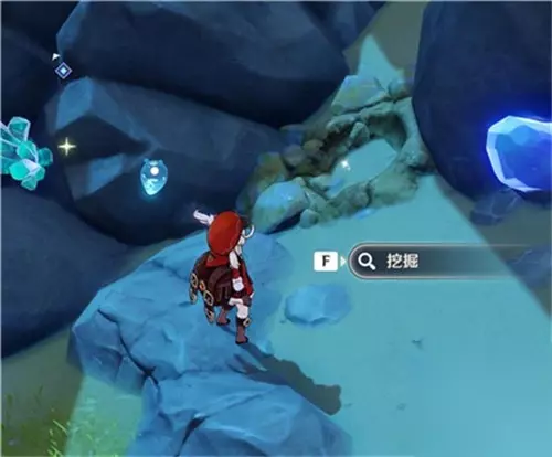1、这里需要玩家击败三只小岩龙蜥和一个遗迹猎者。 2、然后在下图的位置直接进行挖掘即可开启宝箱。