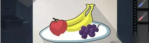 根据水果看到要获取的颜色。 红色现成的就有了,黄色是绿色+红色,紫色是红色+蓝色。