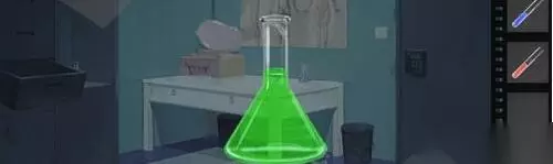 玩家此时会来到在第5关中的模型室,也跟之前一样需要去打开房门,这次是密码锁的形式,涉及到不同的试管、水果等物品,需要根据其科学的方法来知晓最终的结论,难以通关的玩家快来看看攻略内容吧。 更多内容请点击:密室逃脱绝境系列9无人医院攻略大全 攻略详解 拿到桌面上的试管。