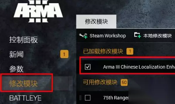 4、回到steam平台,找到武装突袭3的创意工坊选项。 5、搜索中文增强,然后下载模块,休干模块进入游戏后中文设置就好了。
