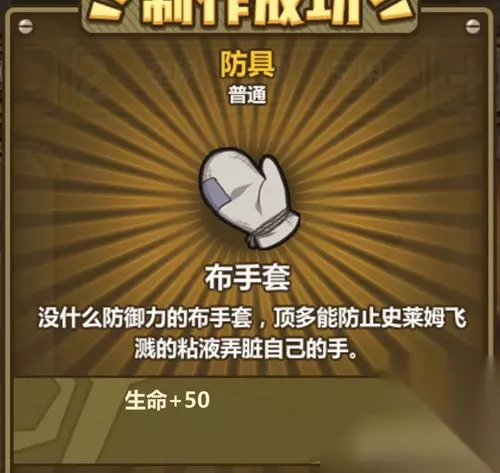牧羊人之心 查看 牧羊人之心中的布手套是个稀有度普通的防具,看着普通,就是普通手套能增加点生命值。这东西挺有意思的,就是没什么防御力,顶多防止史莱姆飞溅的粘液弄脏手。我们来看看这手套的炼金公式,说不定能派上用场。 相关推荐:牧羊人之心炼金公式表格汇总 装备属性