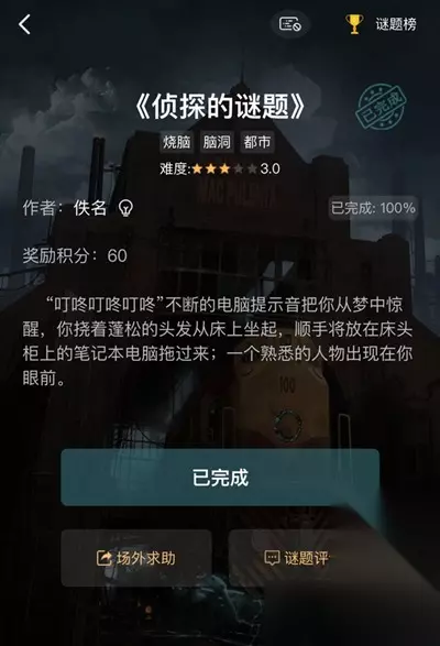 犯罪大师校园推理社谜题答案怎么解答?在犯罪大师的游戏中,校园推理社是新推出的解密谜题,此次的谜题总共有4关,需要玩家利用专业知识和推理来完成答案的解答,很多玩家爱还不清楚正确的答案到底是什么,接下来233乐园小编就为大家带来犯罪大师校园推理社全关卡的答案汇总吧。 犯罪大师校园推理社关卡答案 第一关 问题:91325323636132(请输入解后的答案7个字母) 答案:welcome 解析:九键输入法91表示第九格中第一个字母w32代表第三格中第二个字母e 以此类推答案为welcome。 第二关 问题:从左往右的顺序,下一个图形应该是?(请输入图形编号例如:A) 答案:A 解析:选择A,每项图形由左右两部分组成,前项图形的右部分图形是后项图形的左边部分。 第三关 问题:行路难,行路难,多歧路,今安在?长风破浪会有时,直挂云帆济沧海。51042(请输入解密后答案两个汉字) 答案:长安 解析:0作为分界符,51代表第五句第一个字,42代表第四句第二个字,加起来是”长安“。 第四关 问题:请输入解密后答案 答案:good 解析:把每个符号补全为田,得出GOOD,补上去的部分为如下图: