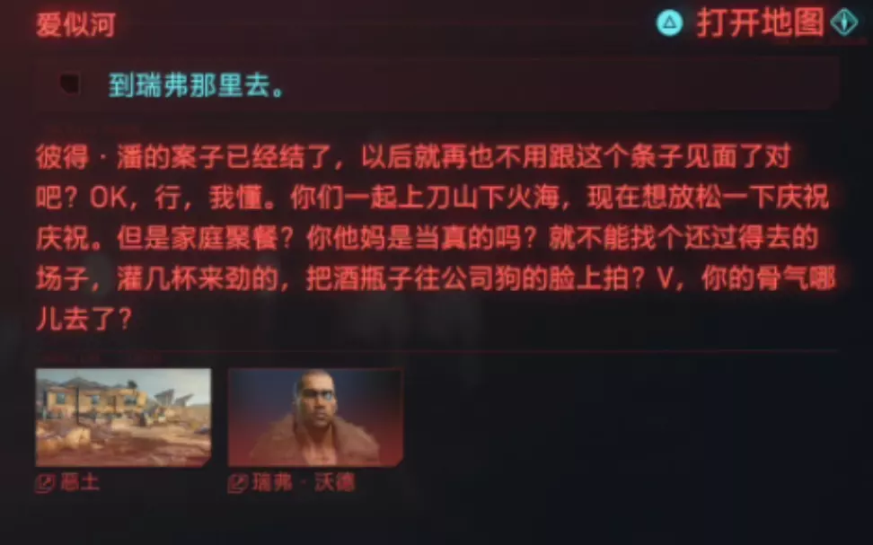 这是ARPG游戏《赛博朋克2077》的“火与酒”任务片段,展示了玩家完成游到岸边、与克里交谈等任务环节,呈现了克里的相关剧情内容。