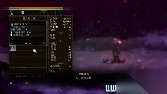 ESC可以看到库存道具和装备。 点击装备可以查看详细属性,敏捷补正S代表其中敏捷属性中获得巨大收益(SABCD收益依次减弱),玩家可以放置10个快捷道具栏。