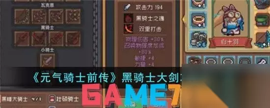 元气骑士前传黑骑士大剑获取方法 挑战黑暗大骑士boss击败获得卡牌,使用卡牌兑换黑骑士大剑 黑骑士大剑介绍 1、黑骑士巨刃 解析:这一把是一个单纯输出的武器,可以基础攻击达到194数值,物理伤害技能也是可以提高暴击率的;