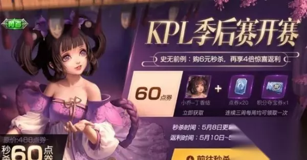 - 小乔丁香结是勇者品质的皮肤。在KPL季后赛的开赛活动中,它的秒杀价格是6元。