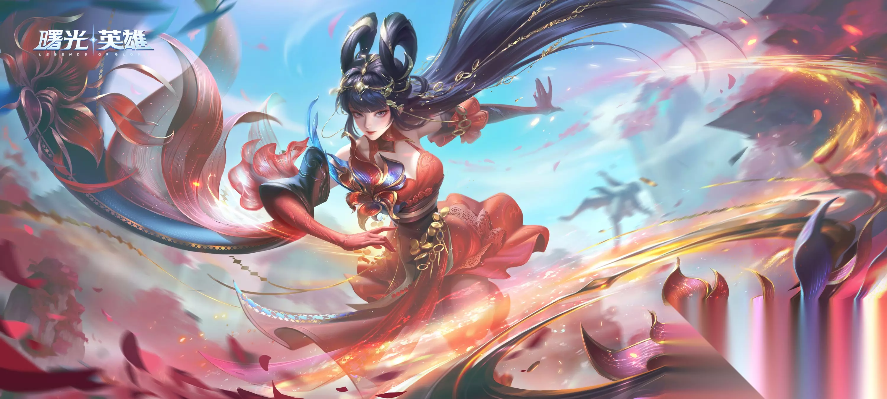 在中国传统仙侠的世界观里,修行者往往能通过修炼达到身心与天地相融的状态,实现超凡脱俗的境界。而这些奇幻又充满想象力的故事,蕴含着中国古人的浪漫情怀,仙侠传说也成为许多中国人的精神故乡。 我们以此为灵感,设计了四款仙侠系列的皮肤,而嫦娥的皮肤离火绯花,是在性格上最张扬的一位。 绽放的花瓣和炽烈的火焰,两个元素都让人感受到蓬勃的生命力,这和中国传统修仙文化中“我命在我不在天”的思想不谋而合。 在配色上,使用了红色和黑色为主色调,辅以烫金纹理设计,体现出中国传统仙侠风的古典华丽美。而清透轻薄的服装材质,则体现出缥缈与灵活感。 皮肤展示视频 CV:姜英俊