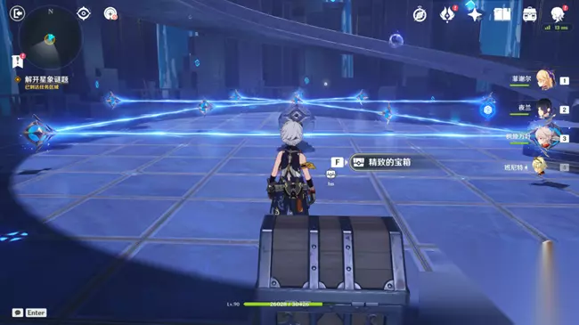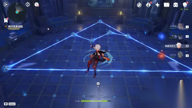 二、解密技巧 1、务必需要注意的是首尾相连; 2、在顶端的位置经常会发射出多个光柱子; 3、第一个解密的内容提示在天花板上,做过之后装置消失; 4、第二个解密是需要其中一个星象碎片在秘境中间的圆台周边; 5、提示的内容在左侧的方块上,可以注意标志形状,后期也会触发。