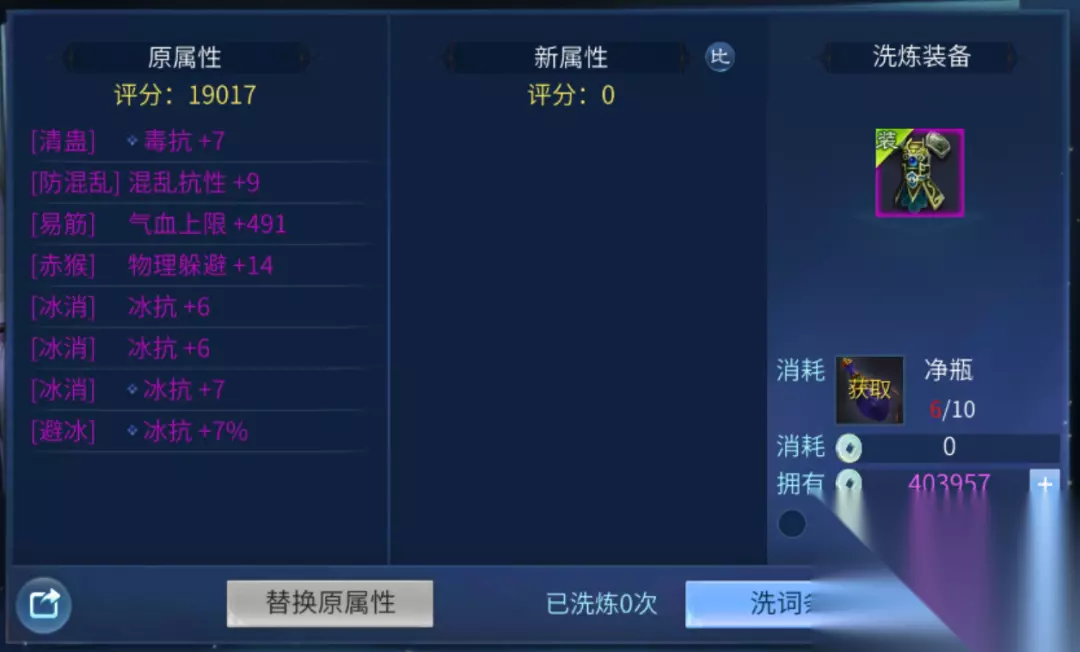 除了在逍遥观秘境的荷花池里解暑,小伙伴们在洗炼装备的时候无意开发了新的降温方式:随机洗出了一件自带“四季如冬”属性的四冰抗衣服!其中甚至有一条冰抗百分比!
