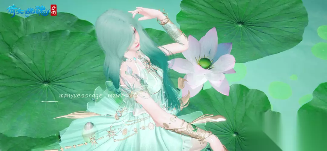 - 来源:投稿@白兔兔.- 薄荷绿的时装【满月颂歌】与满池荷叶适配度满分!穿上它变身荷塘精灵,悠然坐于池心,自成一派仙灵之境。