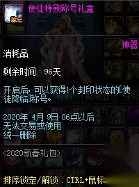 使徒降临称号主要通过使徒特别称号礼盒开出,该礼盒需要购买春节礼包获得。 DNF2020活动 欲望之塔