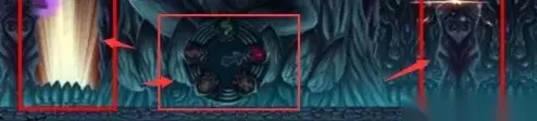 接下来要有点小操作,要攻击图上的转盘指向蝎子图腾,接着同时攻击到两边的石柱才可打开大门。