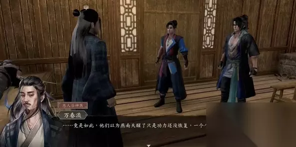 2. 随后,玩家需前往扬澜小镇,找到怪郎中,并进入其房间与燕南天和万春流对话,以获取任务的关键信息;
