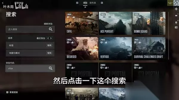 3、点击【搜索体验】 4、左下角输入框输入代码(例:XBE6 / x9za / 1J9T)
