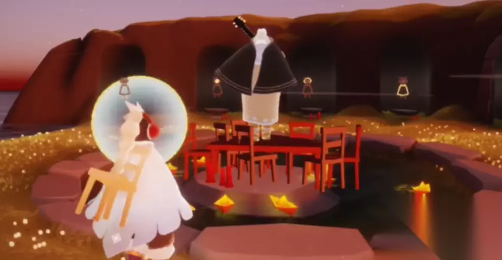藏匿规律与搜寻策略: 空间维度覆盖:洞穴穹顶(晨岛)、孤耸高台(云野)、赛道拐角(霞谷)、雨林树冠深处 —— 多抬头、勤绕行,规避视野死角。 光影视觉标识:寻找恒定散发的蓝色微光,与环境中的动态光源(水母、烛光)截然不同。 声波辅助定位:长按角色发出呼唤声波,蓝光先祖会以独特频率脉冲响应。 唤醒共鸣:解锁星光之忆 靠近先祖后触碰其肩部蜡烛,点燃的星火将激活关键互动: 记忆追溯阶段:跟随蓝色光痕重走先祖的失落之路。这段行走 / 飞行路线考验操作技巧,需避开障碍、穿越光门。 情感传承时刻:成功复原回忆后,先祖化为透明剪影向你躬身致意,此时你自动习得专属动作(鞠躬、欢呼等)。这标志该星光已被唤醒,静待归天。 终幕升腾:神庙星辰仪式 完成单图先祖唤醒后,飞抵地图终点神庙,开启最终救赎。
