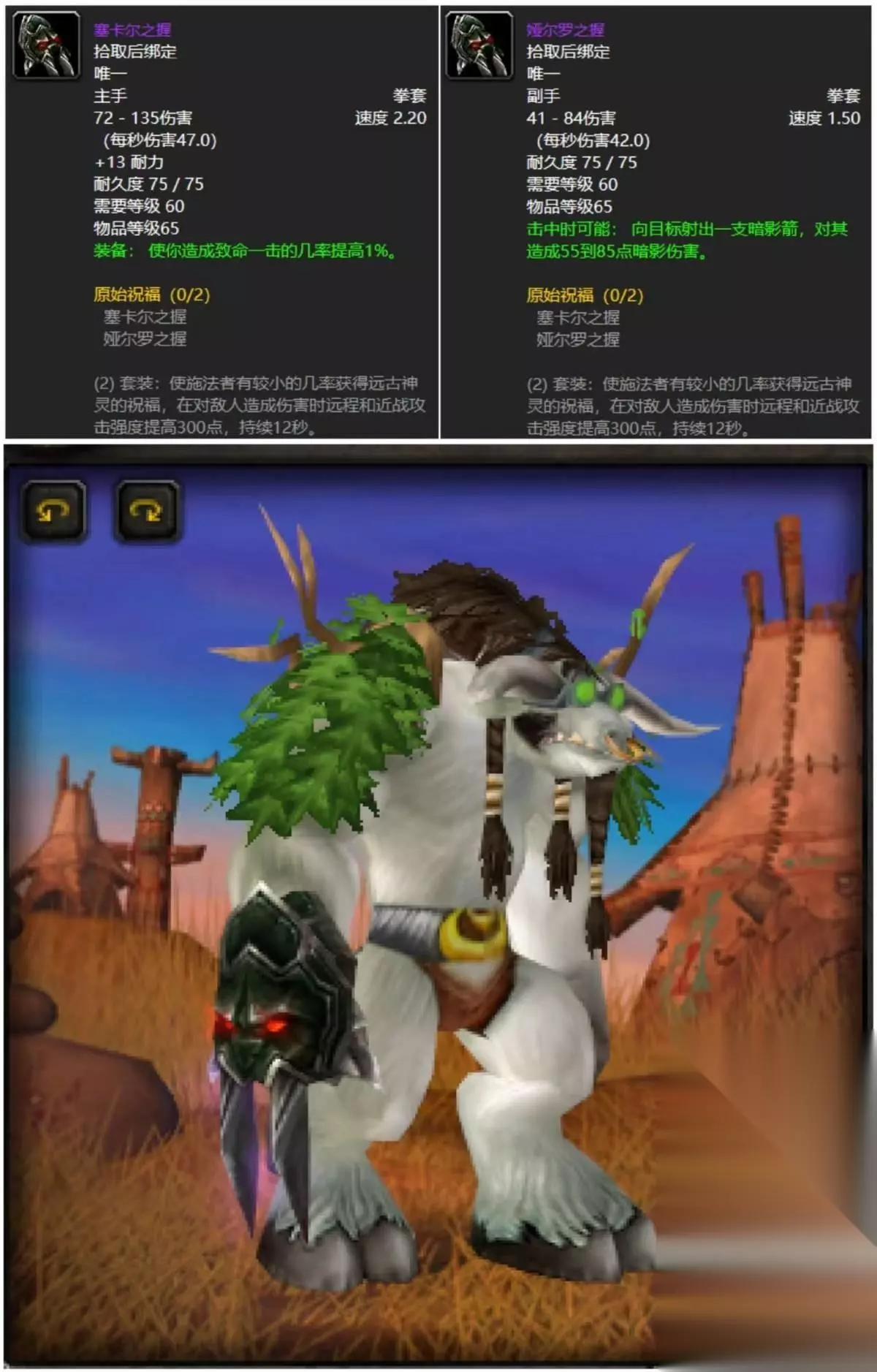 如果说你毛伤害要玛尔里之触。那么高端法神是必须拿下这款看似治疗的法杖,毕竟35点的精神加持真的是你唤醒神器,还怕续航跟不上?不可能的事情好吧!不过你要这东西,还得问问牧师和奶德大佬让不让了。 三:原始祝福拳套