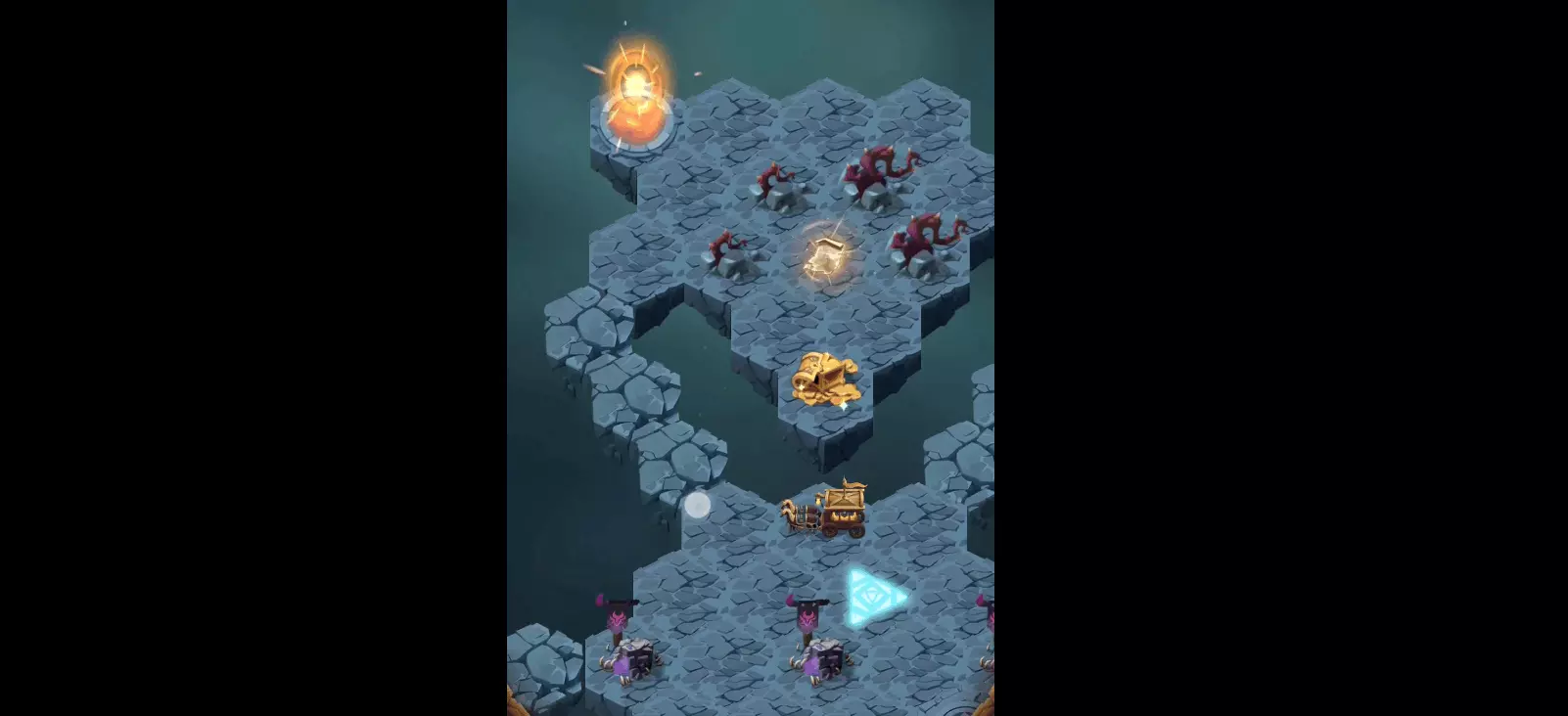 地图上方清理完毕后,接下来我们要去右下方,也是同样的套路,因为路障被炸掉了,所以我们直接过去就行。 右下方清理完毕后,我们需要回到地图的中心,这个时候地图中心会有怪物要我们去击败,击败这些怪物也是有顺序的,我们要先将中间和左边的怪物打死,然后将左边的地图探索完毕。 再将右下角的怪物杀死,将左下角的地图探索完毕,最后还是同样的套路,将最下方的怪兽杀死,探索好下方的地图后我们就可以通关啦。