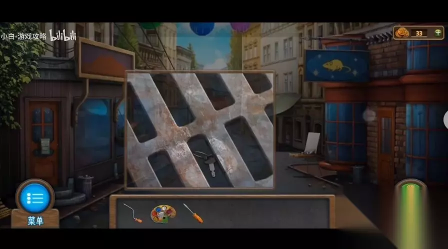 《密室逃脱7环游世界》第九章古董区通关攻略 第九章古董区 224、查询街道右侧的画板,在画板中取得【调色盘】和【螺丝刀】,查询街道左边的花池,在花池中寻找【手柄】。