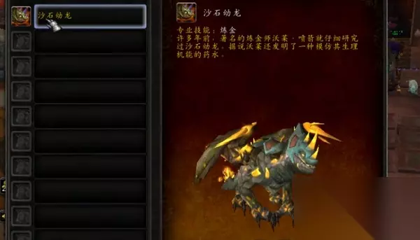 3、做出来之后使用时沙之瓶就可以获得一条沙石幼龙。 4、沙石幼龙就是我们说的炼金龙了,它拥有炼金的技能,还可以当做坐骑使用。