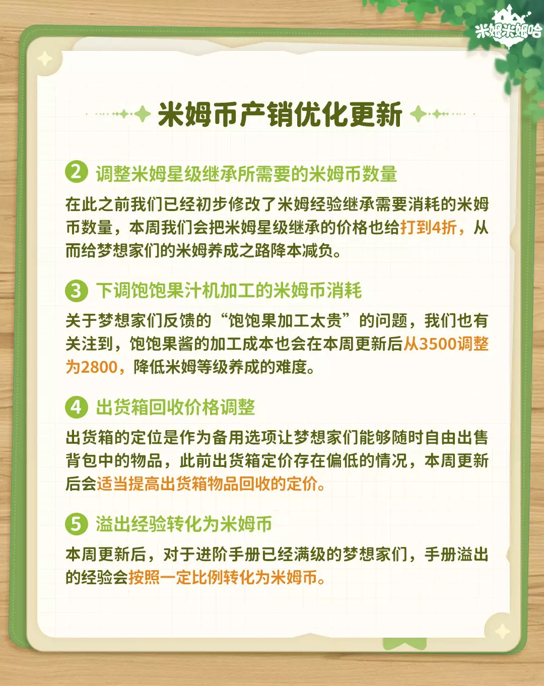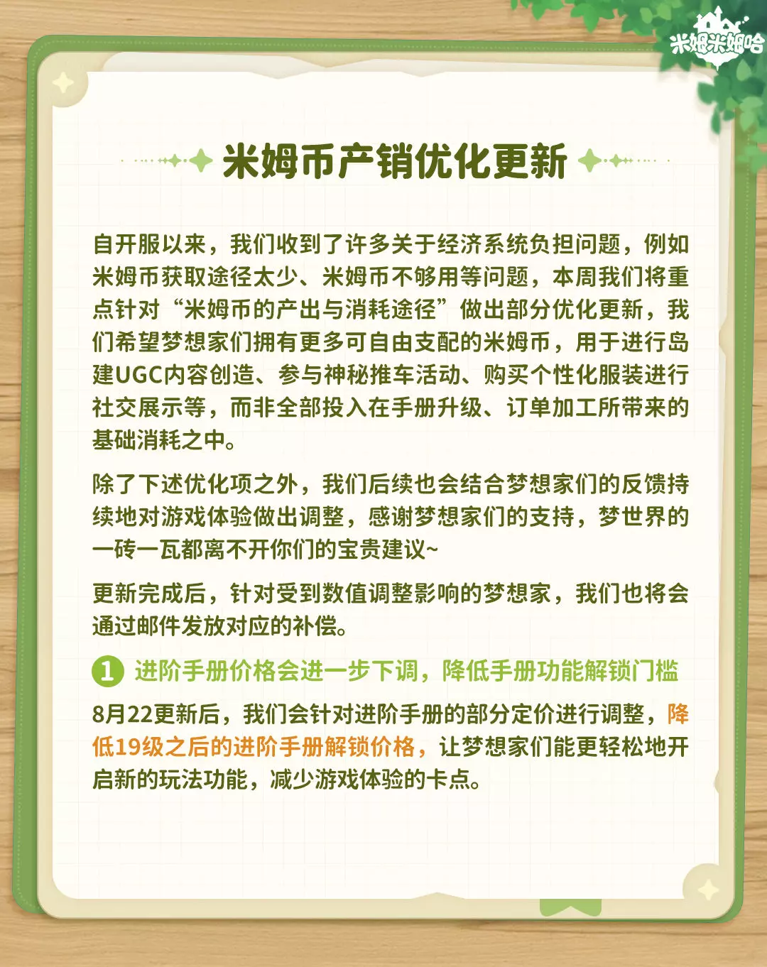1.米姆币产销优化即将更新,减少米姆币消耗