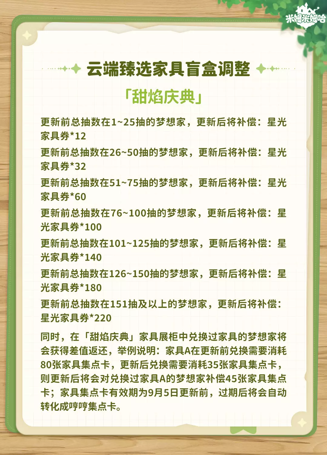 3.云端臻选家具盲盒重复抽选机制调整!按梯度补偿星光家具券