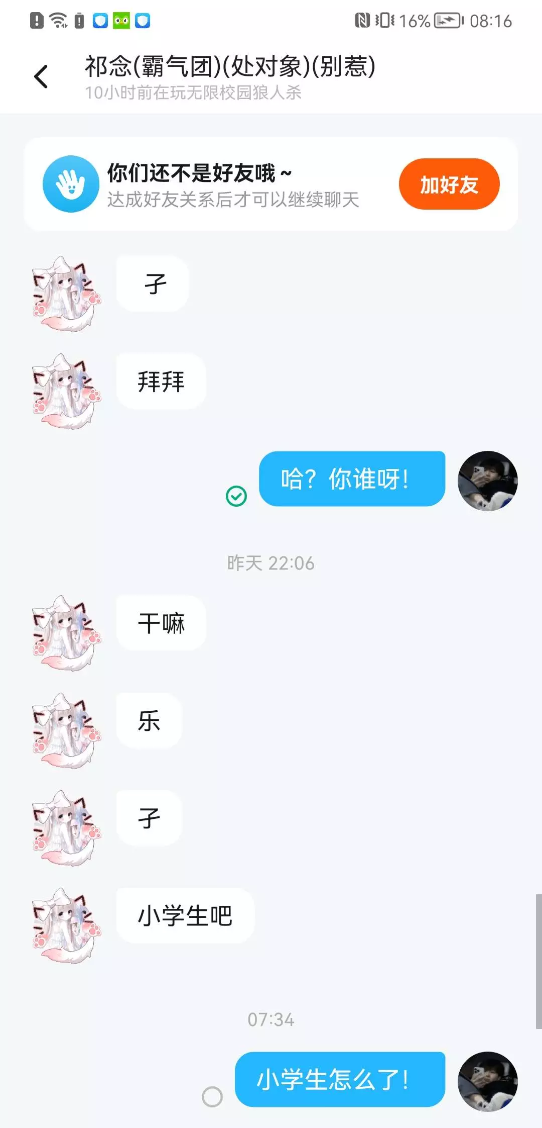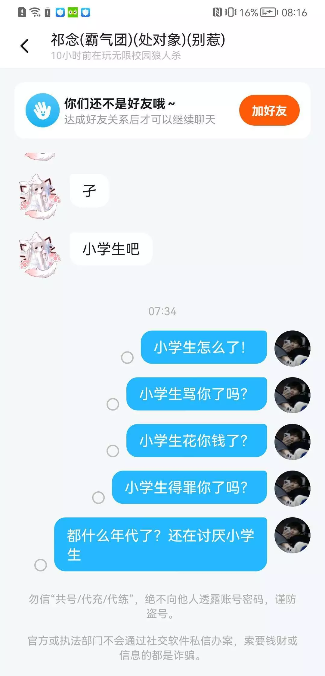 还有,就算我是小学生!我也没咋你呀!真是的