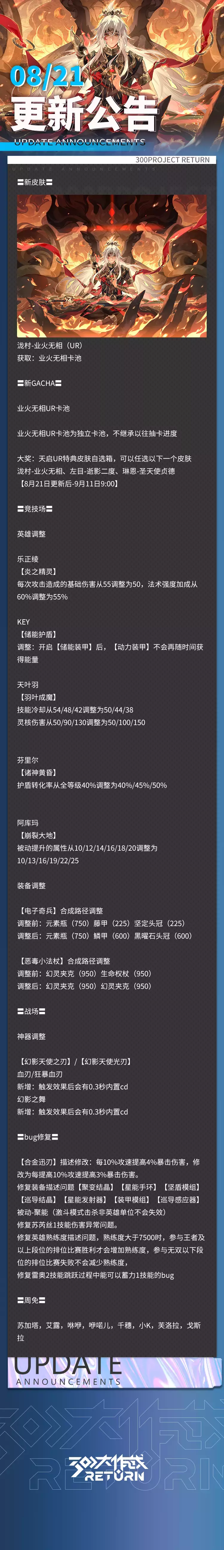 以下为本次维护更新内容及近期修复/优化内容。