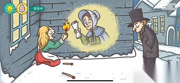 2、然后投影仪中会有播放健身方法,之后卖火柴的小女孩就会跟着一起做,这样就暖和起来了,通关成功。