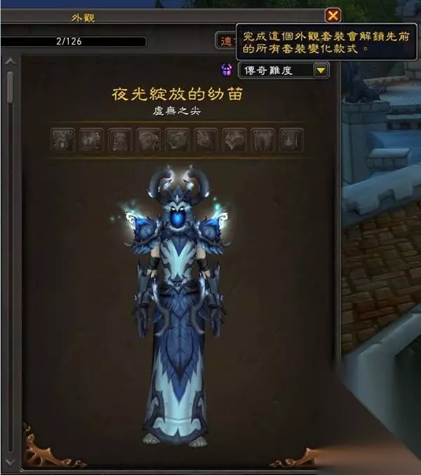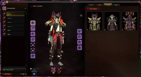 在这里可以预览所有的套装,值得提的是你还没完全收集完的套装也会显示在这里,移到上面时会显示未完成。并且提供让你塑形未完成的套装。算是新功能,因为目前的塑形系统只能方便让你塑形你完全收集完的,如果你只缺一个部位也没办法让你塑形有的部位。这边的新功能可以。 自订套装