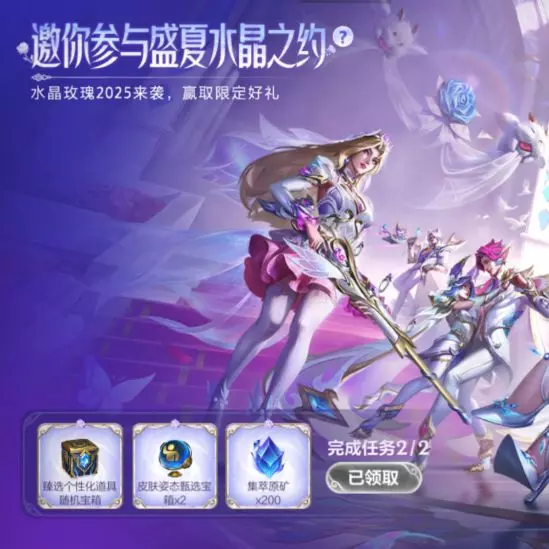 奖励:臻选个性化道具随机宝箱,皮肤姿态甄选宝箱,集萃原矿*200