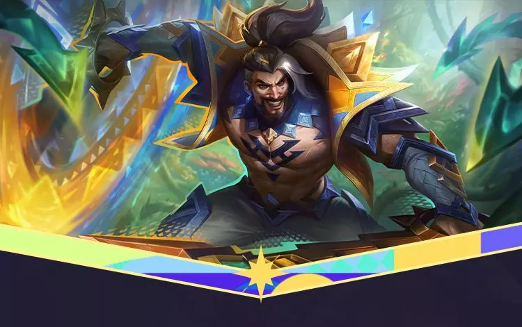 秘灵奇境 巴德现身后,另一道身影已迫不及待要登场,伴随丰富多彩的几何光效旋身亮相,青蓝色的炫光点燃瞳孔,秘灵奇境 德莱文将巨大的金光飞斧向前挥去,伞蜥几何图腾便随斧势跃然显现。