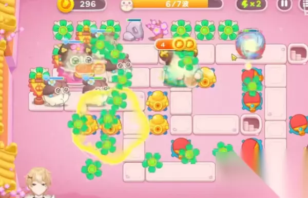4、继续在地图上面补充五叶草来增加伤害,并将所有炮台升到满级。