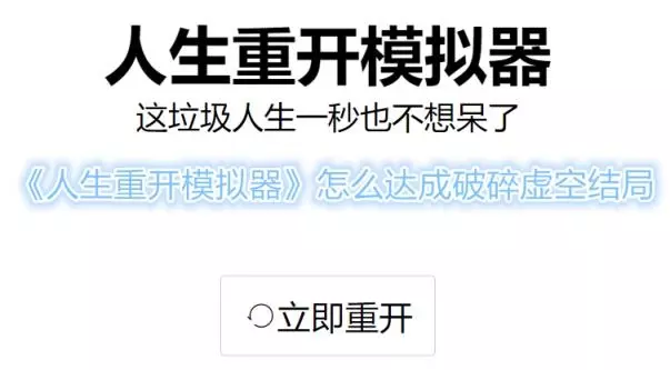 下面是小编整理的关于《人生重开模拟器》怎么达成破碎虚空结局攻略内容,介绍了人生重开模拟器怎么达成破碎虚空结局-人生重开模拟器破碎虚空结局攻略等内容。 破碎虚空攻略 《人生重开模拟器》怎么达成破碎虚空结局?在人生重开模拟器这款小游戏中,玩家可以通过选择不同天赋以及后续发展,达成不同的结局,破碎虚空就是众多结局中的一种,那么怎么达成破碎虚空结局呢,下面为大家带来了人生重开模拟器破碎虚空结局攻略,一起来看看吧。