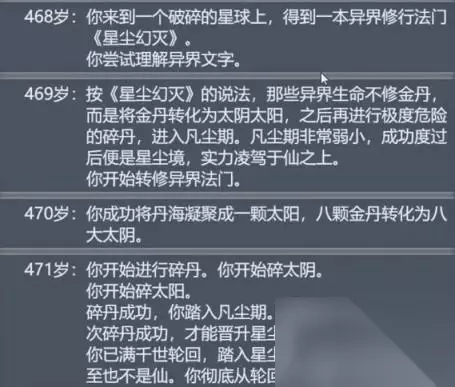 如果轮回次数大于1000,则获得目前的最高结局,星生(星尘境)。