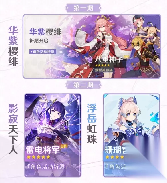 原神2.5版本up池人物分析 up池时间 第一期「八重神子」新角色up、第二期「雷电将军」/「珊瑚宫心海」老角色复刻。 第一期时间:2022/2/16版本更新 —— 2022/3/08 17:59 第二期时间:2022/3/08 18:00 —— 2022/3/29 14:59