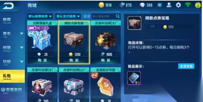 5.商城购买1.用金币购买精致点券宝箱2.用钻石购买神秘点券宝箱