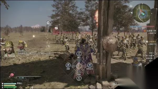 按任务目标先与村落中的夏侯��会和。会和后“江东之虎”孙坚登场,孙坚邀请曹操等人一起对抗村落外的黄巾军。