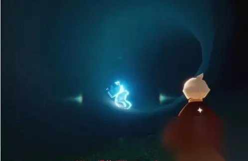 2、飞向洞穴并在门口找到指路蜡烛匠先祖。与先祖互动后,点燃蜡烛跟随它参观壁画。
