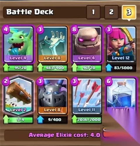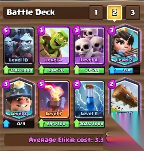 一套专吃大单位兵种的卡组,骷髅海、苍蝇海和哥布林飞桶其一骗到对面的法术,就能抓住对方的破绽组织一轮进攻