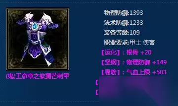 《新倩女幽魂》(鬼)王彦章之软猬芒刺甲是一件109级鬼器品级的装备,职业要求为甲士与侠客。这件金属甲属性怎么样?接下来小编就为大家带来《新倩女幽魂》(鬼)王彦章之软猬芒刺甲属性的详细介绍,一起来看看吧。 (鬼)王彦章之软猬芒刺甲