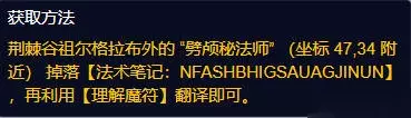 凝时恩护: 1、需 34 名法师用寒冰箭或冰枪术等冰系法术冷却千针石林中的烧焦生物,收集二套[不完整的法术笔记]: 2、美洲狮位于大电梯附近 (23.8,23.4)。动物被关在笼子里。 3、从“加拉克虐待者”处获取钥匙 4、林辛吉德,位于坐标 11,36 附近[烧焦的尖叫盗贼之羽],位于南部的鹰身女妖洞六附近。