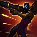 大招:完美谢幕 架好武器并开始引导,可对前方锥形范围进行4次射程极远的超级射击。超级射击在命中第一个敌方英雄后会停下,使该英雄移速降低80%,持续0.75秒并造成65物理伤害,且目标每损失一部分生命值都会提升射击伤害。第4次射击会暴击并造成200%伤害。